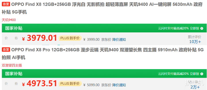 OPPO Find X8 / X8 Pro于去年10月发布,标准版OPPO Find X8起售价为4199元,OPPO Find X8 Pro起售价为5299元。在渠道优惠和国补的加持下,OPPO Find X8和X8Pro的到手价,已经分别跌至3499元和4499元。